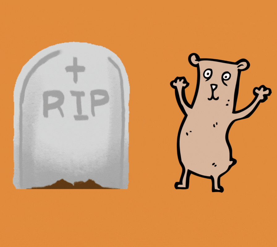Buster the Bear, feeling on top of the world, was confidently strolling through a bullish forest. The market was in an uptrend, and everything seemed just right. But suddenly, Buster heard a mysterious rustling sound behind him. He turned around and saw a gravestone slowly rising from the ground, and from it, a spooky hand shot out, reaching towards the sky!