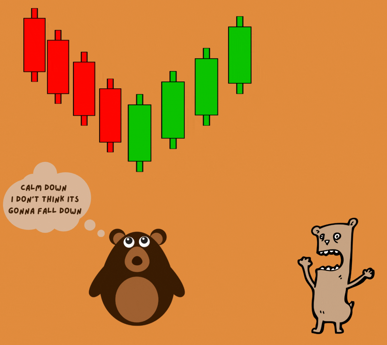 Wink replied, "Yeah, and when there are two of us, 80% of the time, we signal a reversal. The market needs the next candle to decide if the trend will continue or change. We keep things interesting in both uptrends and downtrends!"